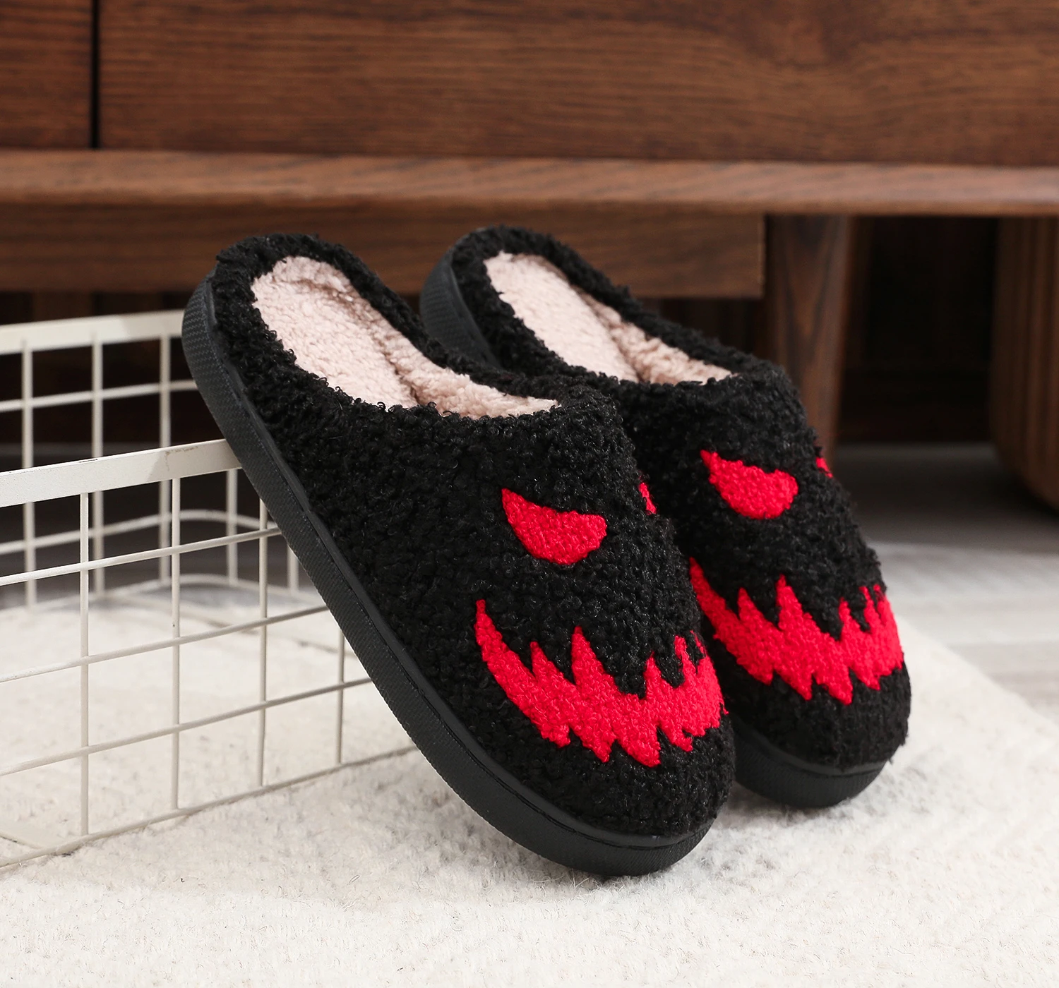 Winter home home red magic pattern cotton slippers non-slip thick bottom wool cotton slippers
